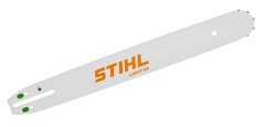 ROLLOMATIC® E Guide Bars - The ROLLOMATIC® E is a general-grade laminated guide bar made of high-grade steel. Consisting of three electrically welded metal plates, it is lightweight, yet provides great stability. A sprocket is incorporated in the nose of the bar that carries the saw chain from the top to the bottom of the bar. This not only reduces wear, but also enables the bar nose to be made considerably narrower. This type of construction is an advantage where extensive use is made of the bar nose (i.e. limbing and boring). All STIHL ROLLOMATIC® bars are designed with a narrow nose to help reduce kickback tendencies. And the star-shaped sprocket can be replaced several times before the whole bar is due for replacement, increasing the service life of the bar.