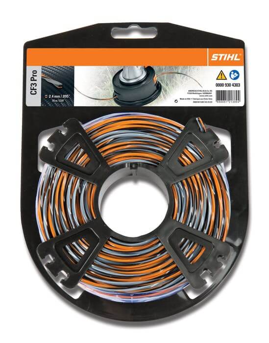 CF3 Pro - This rugged line is formed using three-component, tri-extrusion technology. Its high-quality polyamide components ensure strong durability with excellent cutting performance. Best of all, it is compatible with all STIHL nylon line trimmer heads, making the CF3 Pro at home on any landscape trailer or in any garage. Whether you’re a homeowner with challenging terrain or a professional landscaper requiring more wear and tear out of your line, the CF3 Pro is a line you can stand behind.