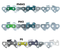 Oilomatic® Picco Micro (PM3) - The STIHL PICCO™ Micro™ 3 chain is a low-kickback, narrow kerf, smooth-cutting, and low-profile chain ideal for small to mid-sized chainsaws with between 1.5 kW (2.0 bhp) and 1.9 kW (2.5 bhp). It performs equally well as compared to the previous model, with the only difference being a slight increase in weight. This semi-chisel chain does not usually get dull as fast as a full-chisel chain in normal use and is easier to maintain and sharpen.