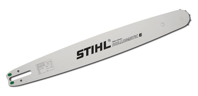ROLLOMATIC® E Guide Bars - The ROLLOMATIC® E is a general-grade laminated guide bar made of high-grade steel. Consisting of three electrically welded metal plates, it is lightweight, yet provides great stability. A sprocket is incorporated in the nose of the bar that carries the saw chain from the top to the bottom of the bar. This not only reduces wear, but also enables the bar nose to be made considerably narrower. This type of construction is an advantage where extensive use is made of the bar nose (i.e. limbing and boring). All STIHL ROLLOMATIC® bars are designed with a narrow nose to help reduce kickback tendencies. And the star-shaped sprocket can be replaced several times before the whole bar is due for replacement, increasing the service life of the bar.