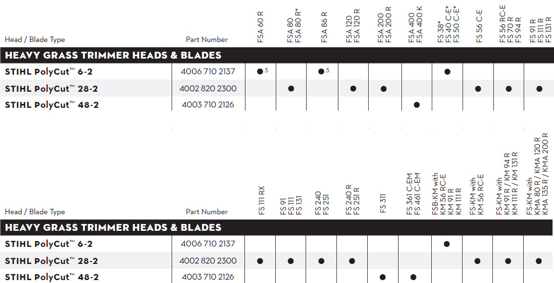 This is a multi-purpose cutting tool with three thermoplastic blades that are ideal for hard-to-reach places and large areas of high-growing grass. The blades are mounted on bushings and extend when the engine is brought up to operating speed. The white thermoplastic blades are also ideal for trimming around monuments and other solid objects as they don’t mark the stone. The blades are easy to change and some models can also be fitted with flexible nylon line in addition to or in place of the blades.