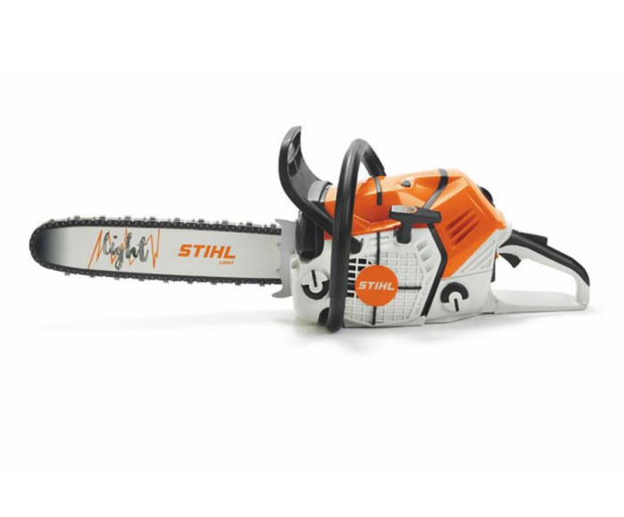 Unleash the fun with the new battery-powered toy chainsaw, inspired by the cutting-edge STIHL MS 500i. This entry-level tool for young enthusiasts brings the thrill of real chainsaw action to playtime, featuring a movable, interchangeable chain, a bright LED operation indicator, and a refreshed bar design. Plus, with a parent-friendly volume control, the authentic saw sounds can be easily adjusted to keep playtime pleasant. It's the perfect way for kids to experience the excitement of the outdoors, just like the grown-ups.