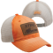 Washed orange twill and off-white mesh cap. Front patch screened with STIHL logo and chain saw. POWERED BY STIHL® label sewn over back vent. Plastic tab back closure.